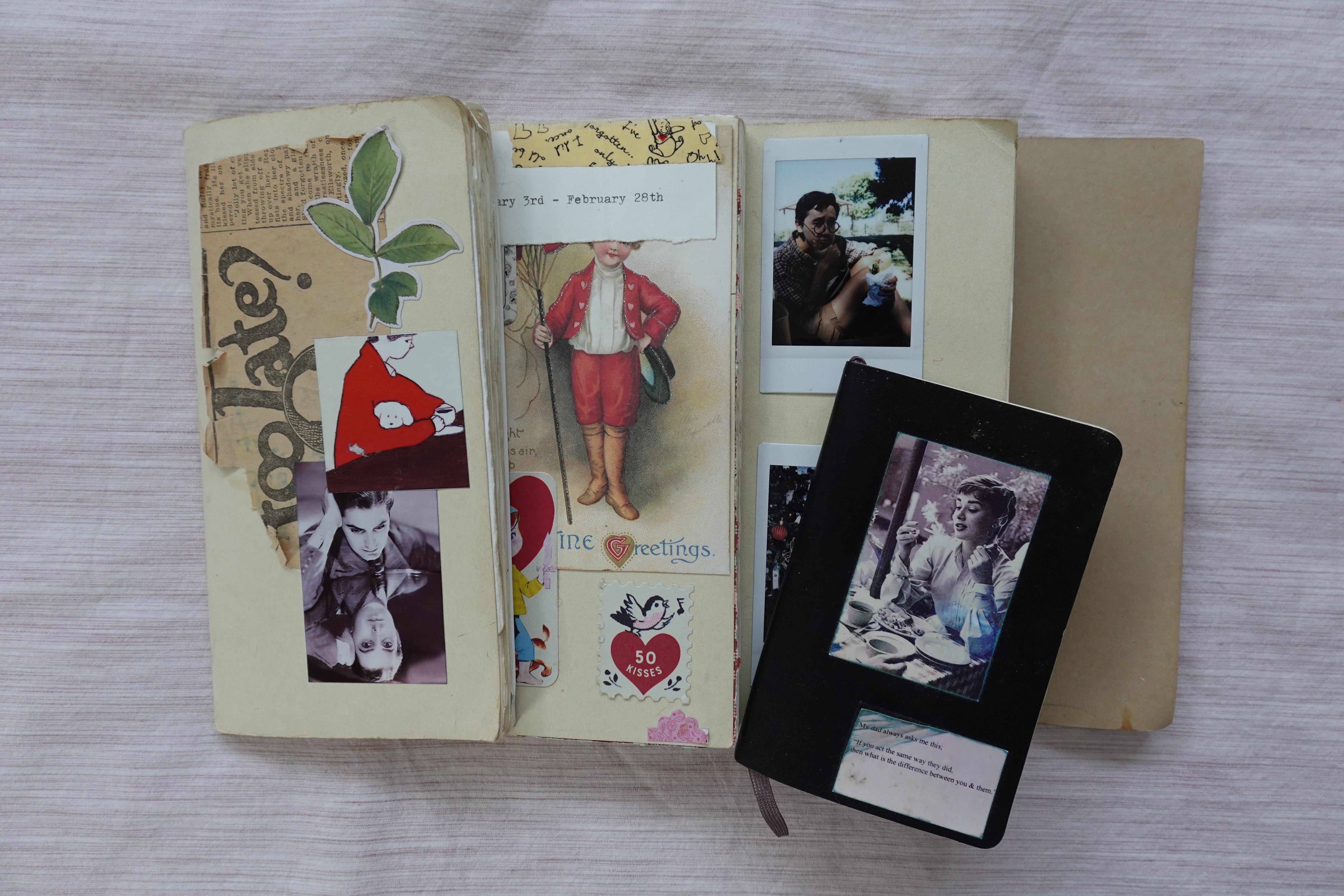 In college, I took a class learning about contemporary art which made influenced my the passion I have for journaling. The works of Robert Rauschenberg and Jerome Robbins’ accordion diaries inspires how I view and create journal spreads. I admire art that is both personal and uses mixed media.