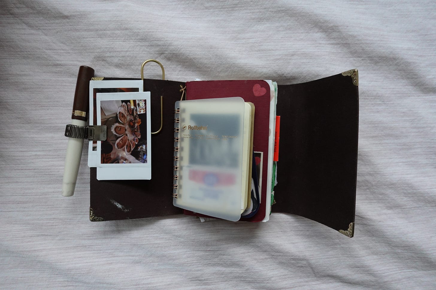 The mini journal is from Rollbahn and that is my common place for every quick thought. Inside are notes, journal/video ideas, book notes, words I want to learn, etc.